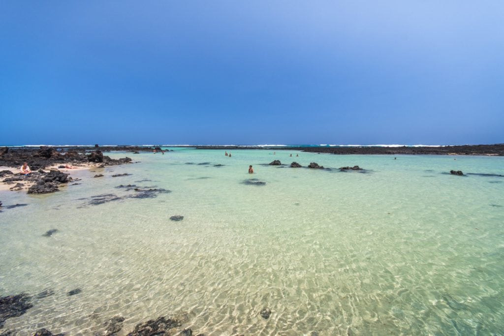 Per il piacere del viaggiatore, questa spiaggia è ricoperta di fine sabbia bianca, che produce un effetto visivo sorprendente sull’acqua, e tale opera d’arte contrasta con i flussi di lava. Data la tranquillità delle sue acque, è una spiaggia perfetta per divertirsi con la famiglia o sdraiarsi al sole. Inoltre la calma che si respira è tipica del paesaggio vulcanico che, con le sue forme astratte e disordinate, isola le spiagge dalla piccola civiltà che è presente nell’ambiente.