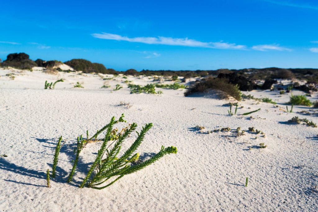 Il paesaggio che lo circonda è fatto di dune e vegetazione scarsa che lotta per crescere in questo luogo di sabbia e alisei. Tutto questo ci invita a fermarci e godere di questo fantastico paesaggio selvaggio.